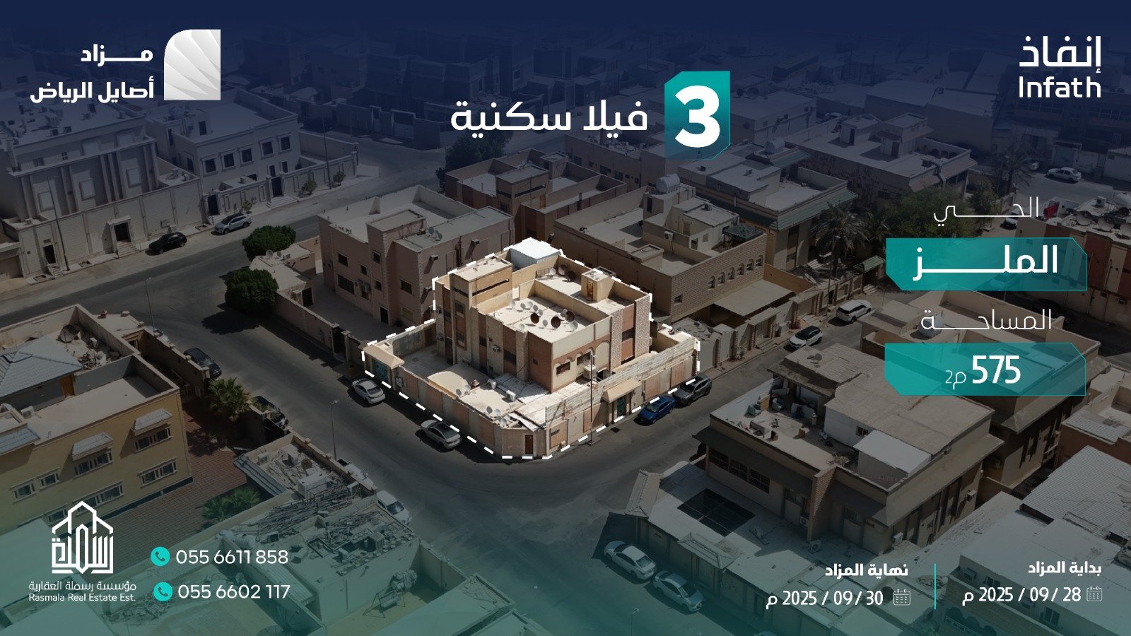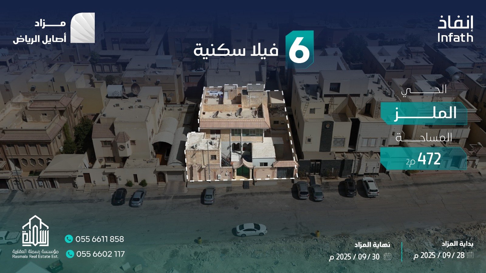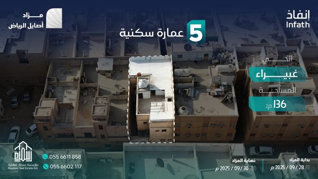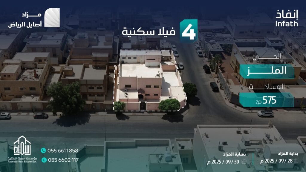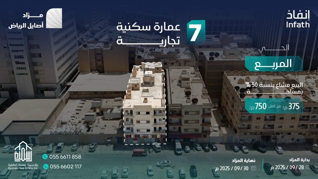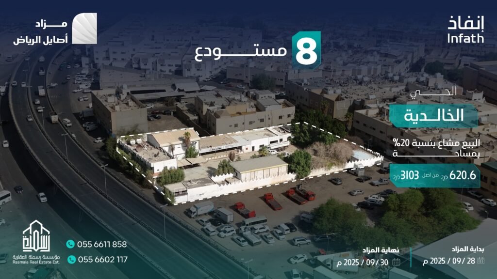 تعلن مؤسسة رسملة العقارية وتحت إشراف مركز الإسناد والتصفية “إنفاذ” وبقرار من محكمة التنفيذ وبحكم من محكمة الأحوال الشخصية عن البيع بالمزاد العلني ل 8 فرص عقارية في مدينة الرياض
